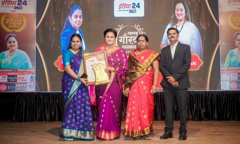 आरती मनोहर कांबळे यांना इंडिया 24 लाईव्हचा महाराष्ट्र गौरव पुरस्काराने सन्मानित