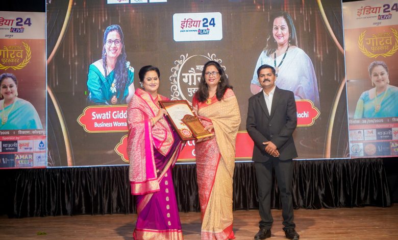 स्वाती गिद्दे यांना इंडिया 24 लाईव्हचा महाराष्ट्र गौरव पुरस्काराने सन्मानित